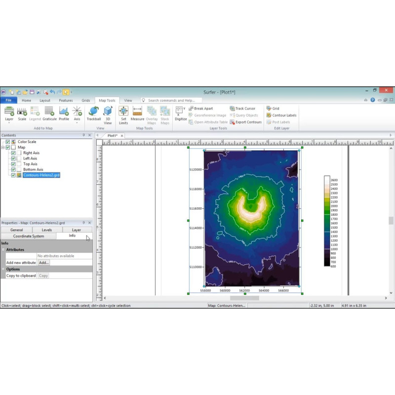 Golden Software Surfer – потужна система створення тривимірних карт, моделювання та аналізу поверхонь, візуалізації ландшафту, генерування сітки та багато іншого. Продукт дозволяє створювати реалістичні 3D карти з урахуванням освітленості та тіней, використовувати зображення місцевості у різних форматах, експортувати створені карти у різні графічні формати. Потужні інтерполяційні функції дозволяють створювати точні поверхні найвищої якості.