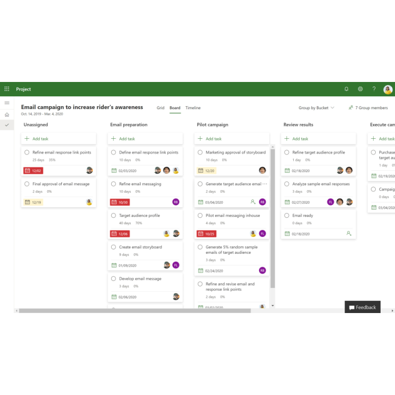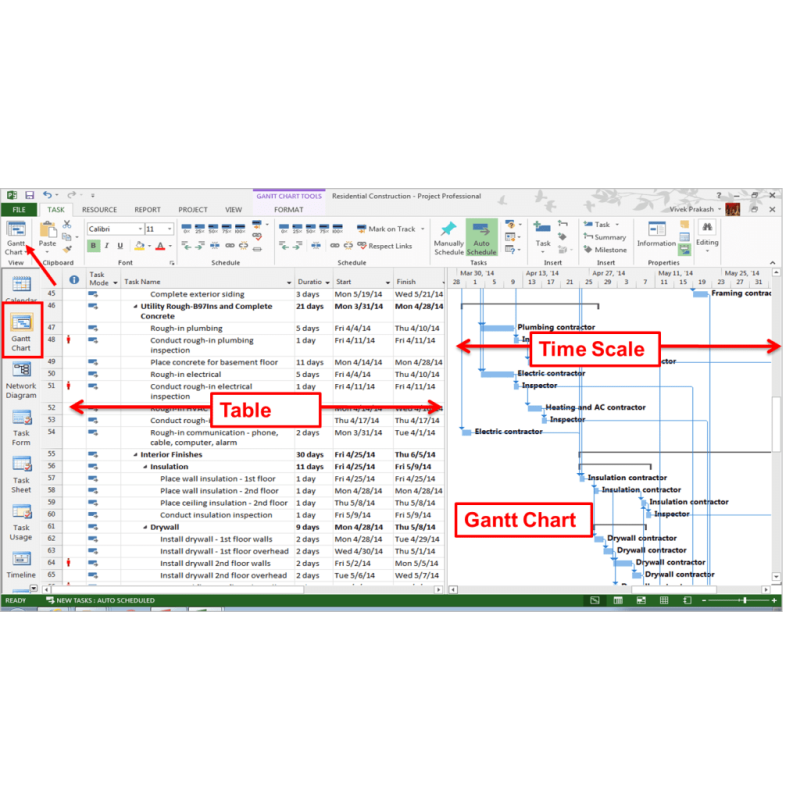 Планування завдань і термінів: Microsoft Project дозволяє створювати список завдань, вказувати тривалість кожного завдання, встановлювати дедлайни та залежності між завданнями. Інструмент Gantt Chart надає візуальне представлення графіка проекту, що полегшує моніторинг термінів та пріоритетів.