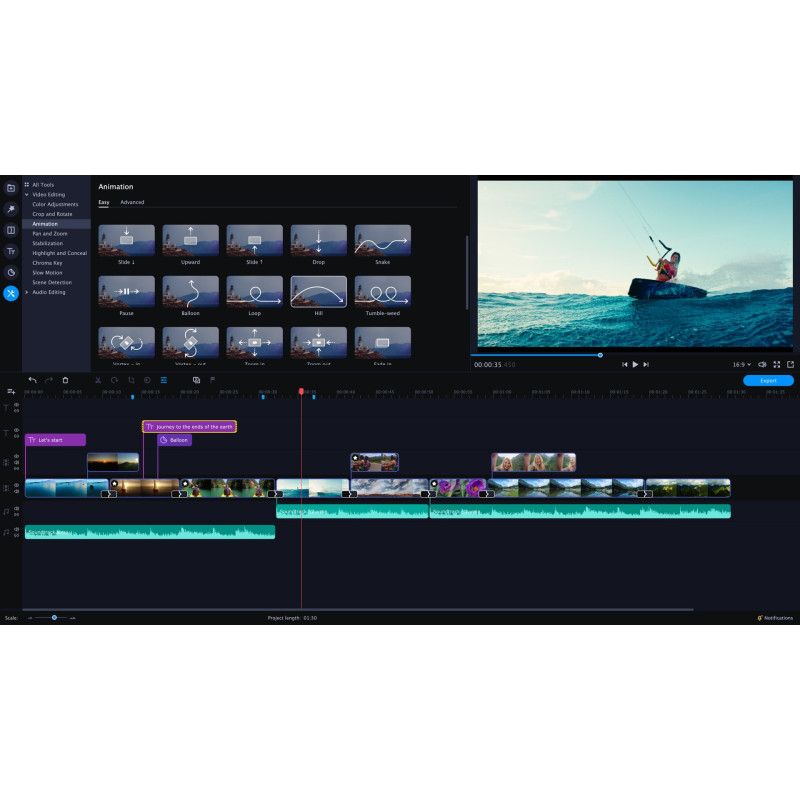 Movavi Video Editor Plus забезпечує широкі можливості для редагування відео, в тому числі обрізання, розмиття або додавання фільтрів, зменшення швидкості або збільшення частоти кадрів. Однак, ви не зможете редагувати захищені відеофайли, в такому форматі, як, наприклад, DVD.Висновок