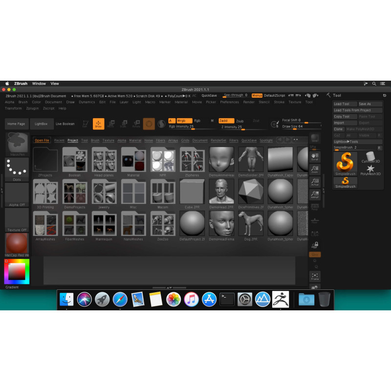 Встановлення будя якої версії Maxon ZBrush на Mac OS. Мова інтерфейсу - англійська